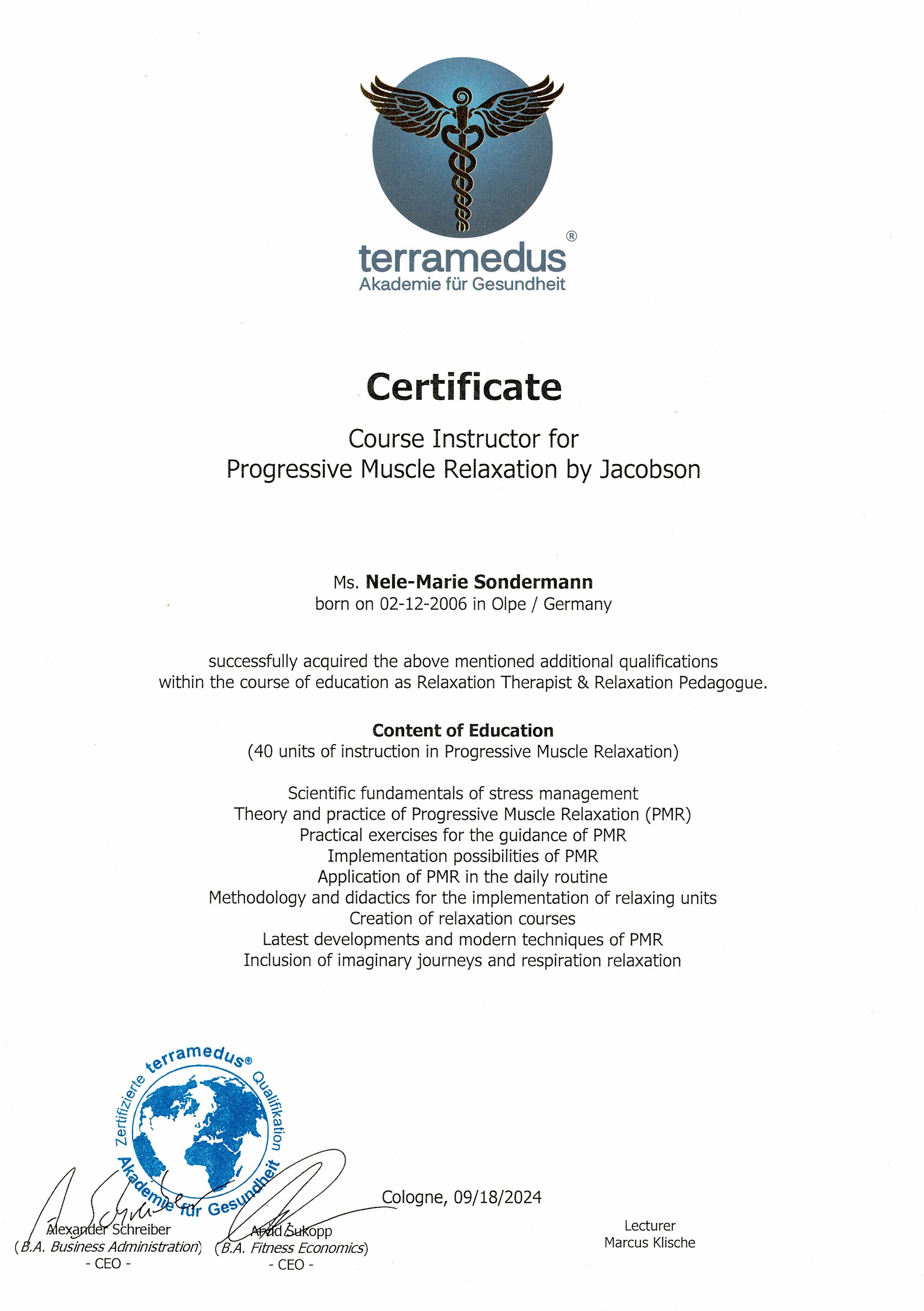 • Progressive Muskelentspannung (PMR), Entspannungstherapie